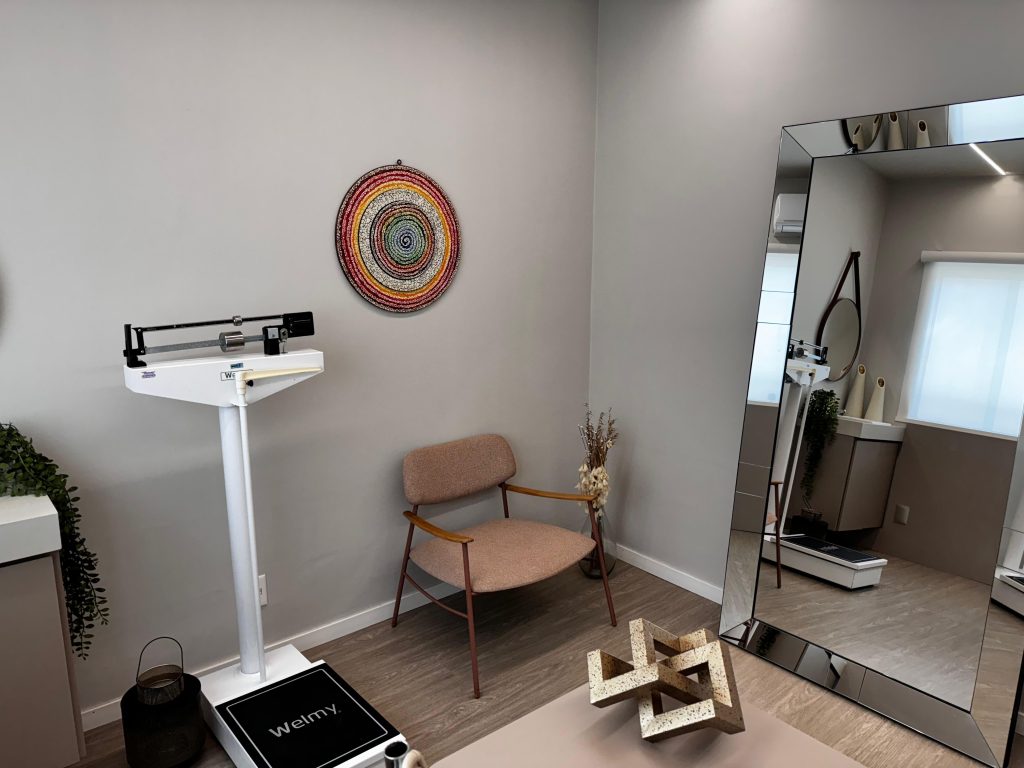 A avaliação física é um conjunto de medições e análises utilizadas para avaliar o estado nutricional e físico do indivíduo, possibilitando uma comparação evolutiva ao longo do tempo. Durante a avaliação, registramos a altura, o peso, a circunferência abdominal, o percentual de gordura (utilizando dobras cutâneas) e realizamos um registro fotográfico. Todas essas informações ficam disponíveis no aplicativo do paciente, permitindo que ele acompanhe sua evolução de forma contínua.